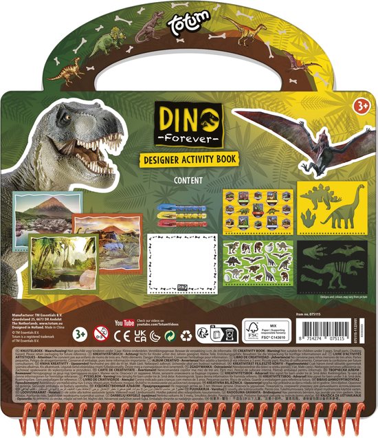 With this fun resealable activity book, 20 sheets of pre-printed paper, templates and stickers, play backgrounds and 3 gel pens, you can create the most beautiful Dinosaur designs. Complete book with Dino Forever theme, including 3 colors of glitter gel pens.