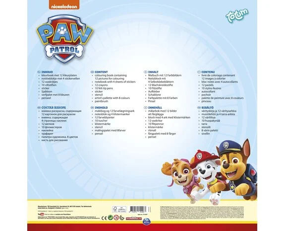 With this extra large drawing, coloring and painting set you have everything at hand for your most beautiful Paw Patrol creations: marker, crayons and coloring pages. Handy for at home or when traveling.