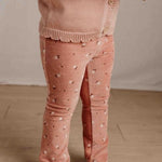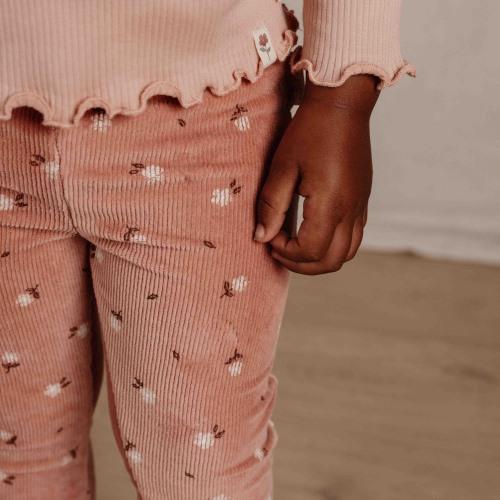 Step into the flower fields with these cute trousers in Warm Rose! Made of soft and warm material and decorated with tiny flowers, these flared pants make perfect for the colder autumn and winter days. The trendy silhouette adds a touch of flair to your little one's look. And the elasticated waistband ensures a comfortable and flexible fit. Inspired by the charming country Farm collection, these trousers pair effortlessly with every other piece from the coordinated line.