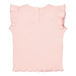 Summer days call for something airy, sweet and comfortable. This sleeveless Fairy Pink T-shirt is just that. Made from a soft ribbed fabric with fine texture that moves gently and feels lovely to wear. The shoulders are finished with cheerful ruffles, and a 3D ‘bloom’ artwork decorates the chest – a subtle nod to growth and blossoming. Made of organic cotton and Oeko-Tex certified – a safe and conscious choice for every day. A fresh and playful piece that pairs effortlessly with a skirt or shorts. For sunny adventures full of little discoveries.