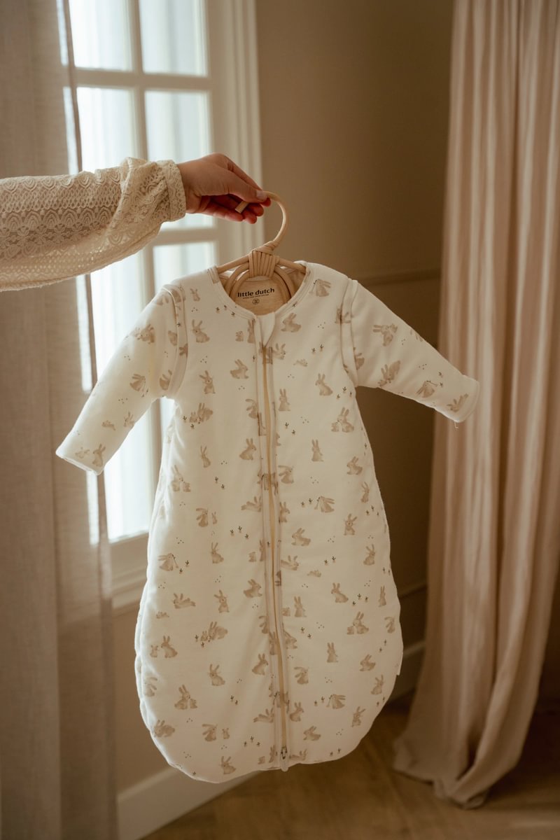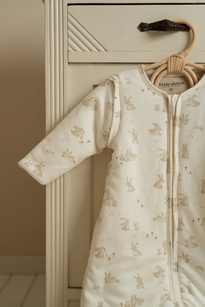 Let your little one sleep in style with this winter sleeping bag (with detachable sleeves) from the Baby Bunny collection! The improved fit and quality take comfort to the next level and ensure a cozy night's sleep. The round bottom gives your baby complete freedom of movement for cute sleeping positions. The sweet Bunny print makes going to bed just a little more cozy (for both of you!). The sleeping bag is available in 70 cm and 90 cm. The zipper closes downwards, so that your child cannot easily open the sleeping bag themselves. There is a flap over the zipper to protect the sensitive baby skin.