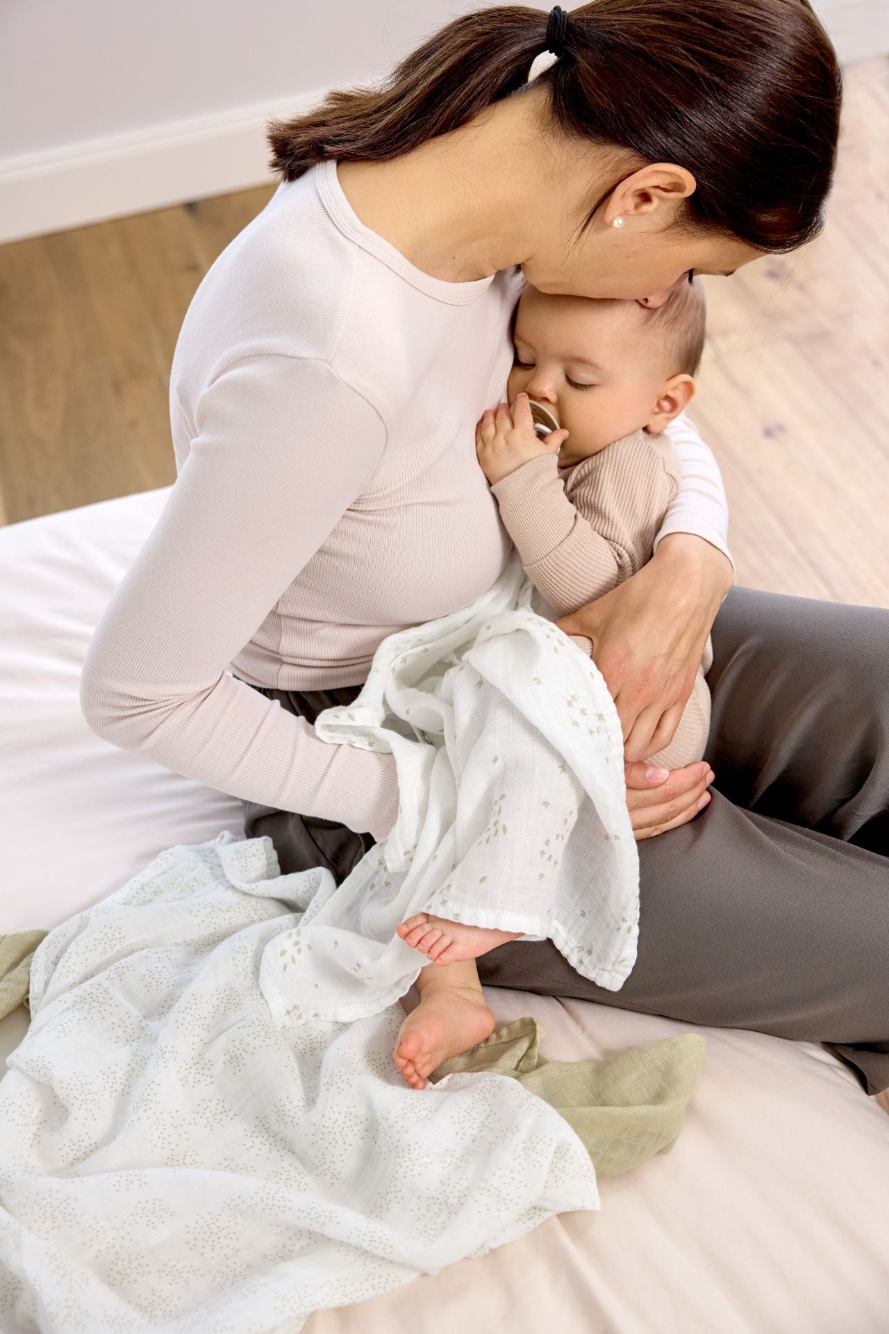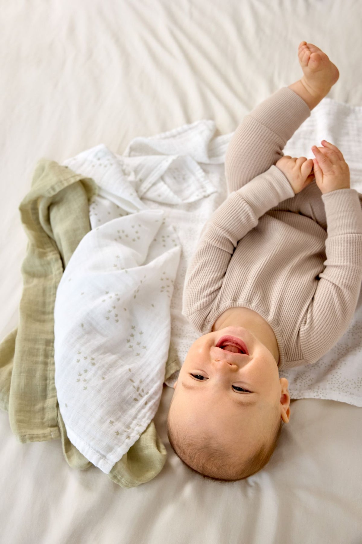 Swaddle & Burp Blanket M (3pcs) GOTS Leave olive/milky