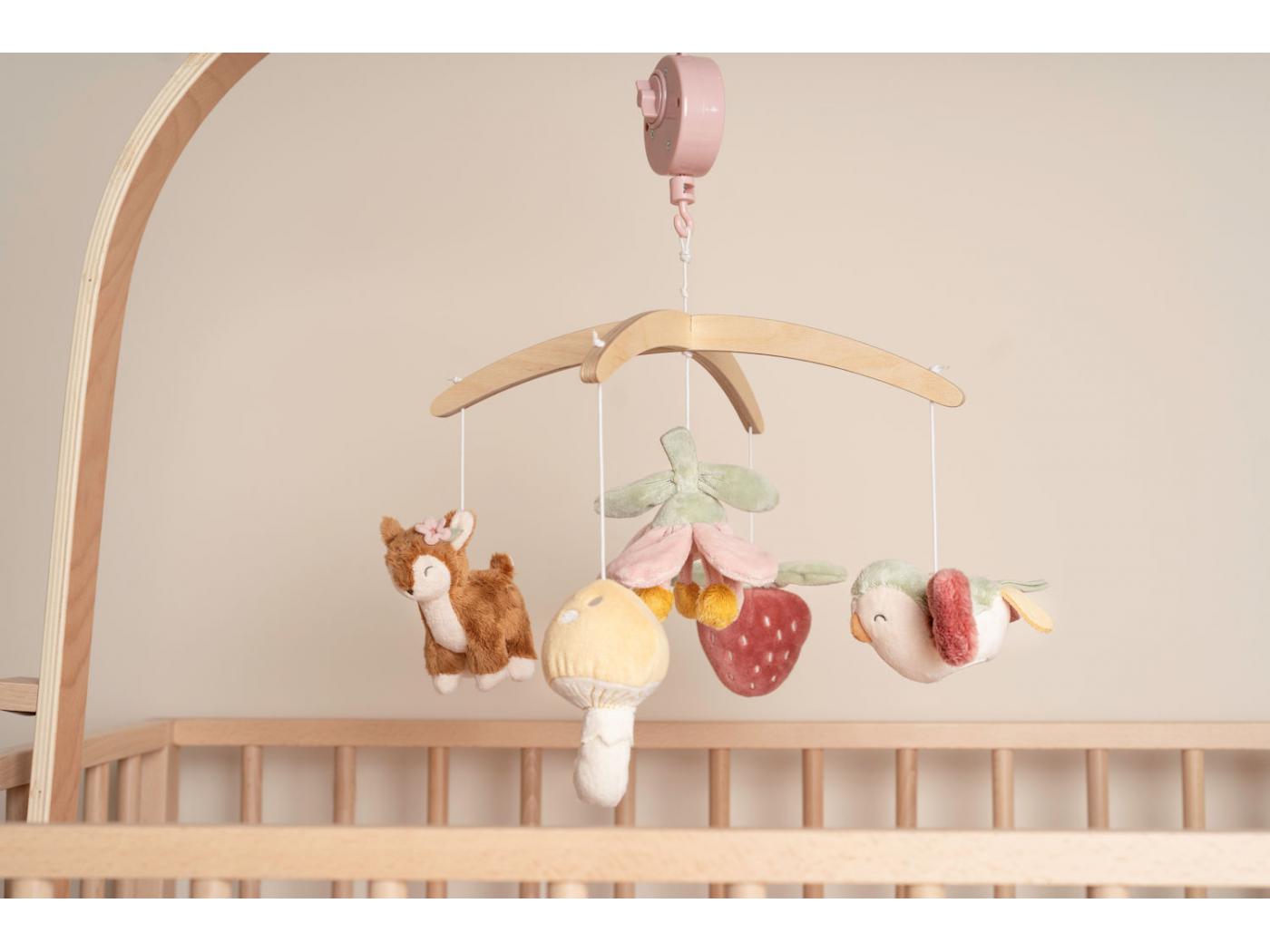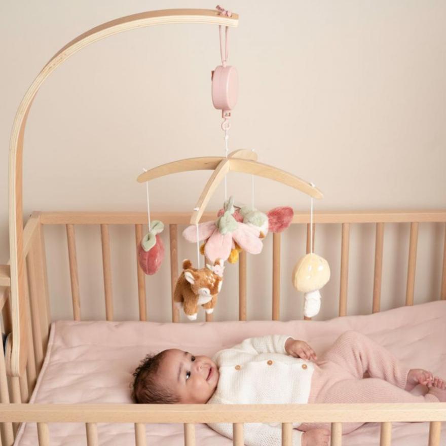 Follow the sound and watch the little deer and bird turn. This cute wooden music mobile has a soothing effect on babies thanks to the sweet lullaby. It features five different hanging toys to look at from the Fairy Garden collection: a little deer, strawberry, flower, mushroom and bird. As your little one enjoys the movement of each toy, the music mobile stimulates visual development. The music mobile is suitable from birth and easy to attach to the crib or playpen. WARNING! Attach this toy out of the reach of the child. To prevent possible injury by entanglement, remove this toy when the child starts trying to get up on its hands and knees in a crawling position. Adult assembly required.