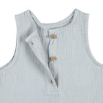 Discover this powder blue GOTS muslin jumpsuit from the Lassig brand, designed especially for children aged 13 to 24 months. This jumpsuit is soft, comfortable and chic, perfect for family outings or naps at home. It is made from muslin, a light and breathable material, ideal for your child's delicate skin.