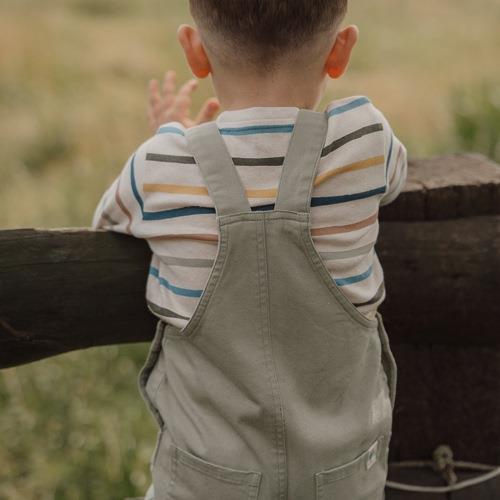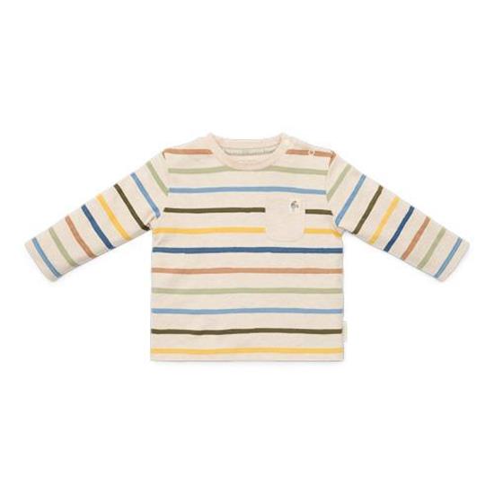 Explore the countryside, stripe by stripe! This long-sleeved t-shirt lets your little one hit the road in style. Made of soft off-white organic cotton, with stripes in earth tones. The chest pocket adds a playful detail. This t-shirt matches all items from the Farm collection, so your little one will be stylishly dressed from head to toe.