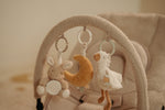 Small hands, big discoveries! The Activity Hanging Toy set Newborn Naturals provide endless fun with soft rattles, moving elements and different textures to feel and grasp. This stimulates the senses and promotes motor development. Easily attach them to the stroller so that your little one can also play on the go. Made of soft materials for little explorers. A playful adventure at your fingertips!