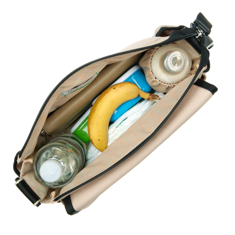 The Stroller Bag eco is designed to store your daily essentials (and then some). This compact bag has a zipped closure so you can store your valuables securely. While leaving enough space for nappies, wipes, snacks and more. Attach to your stroller with our patented built-in stroller strap, or sling across your shoulder and wear as a stylish handbag. This is a must-have piece of kit for any parent.