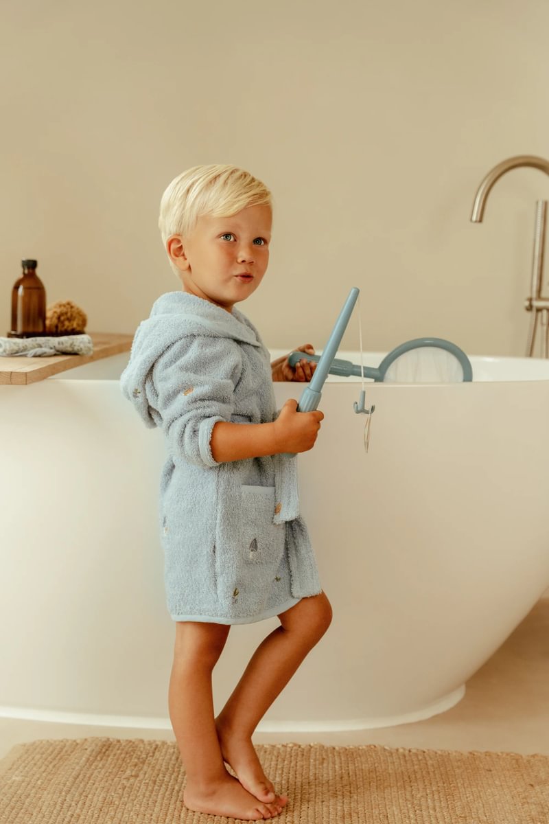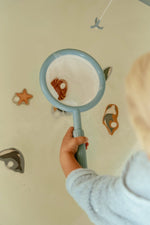 Just get it! With this blue bath fishing game, every bath session becomes a cheerful adventure. The set includes a fishing rod, a landing net and eight colourful figures, such as flowers and sea animals. Fishing, scooping and discovering: little hands experience endless fun and playfully practice their motor skills. The handles of the rod and the landing net can be unscrewed, so you can easily store everything. Enjoying the most beautiful water moments together has never been easier!