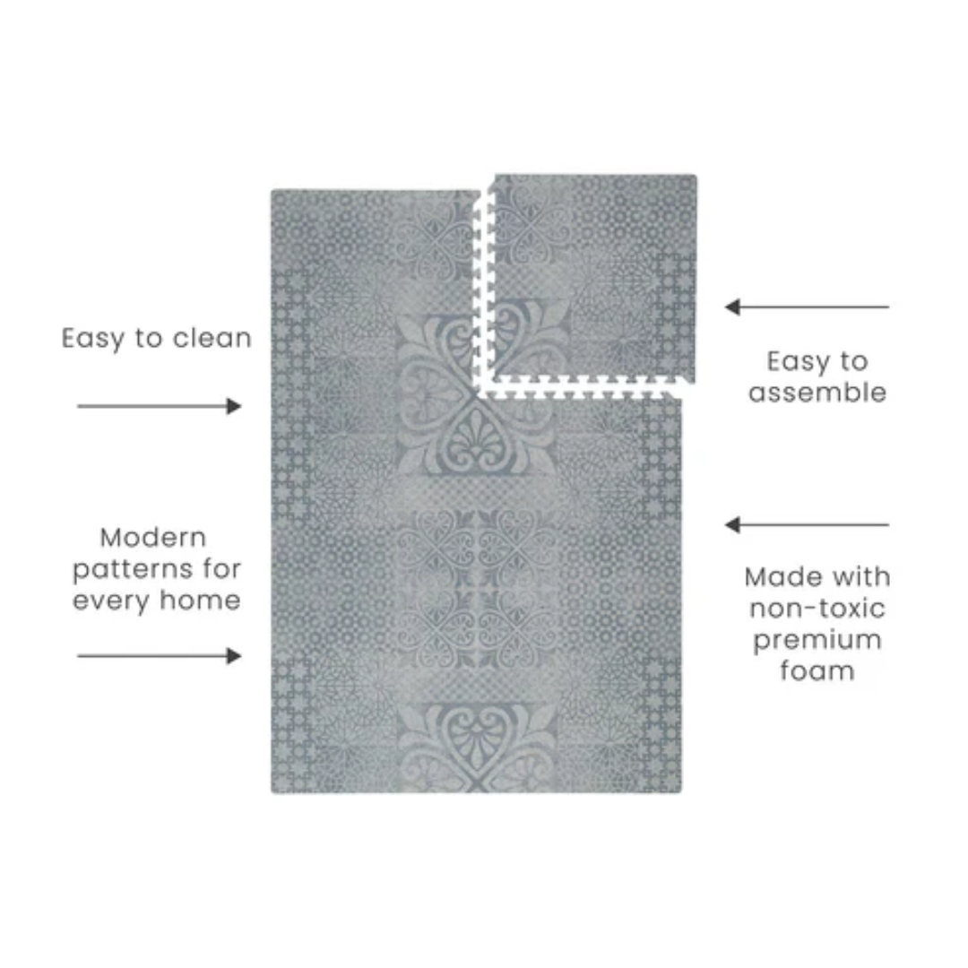 • One assembled mat is sized at 120x180cm/4x6ft but the possibilities for sizing are endless – simply attach multiple tiles together to find a size that fits your space.