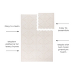 • One assembled mat is sized at 120x180cm/4x6ft but the possibilities for sizing are endless – simply attach multiple tiles together to find a size that fits your space.