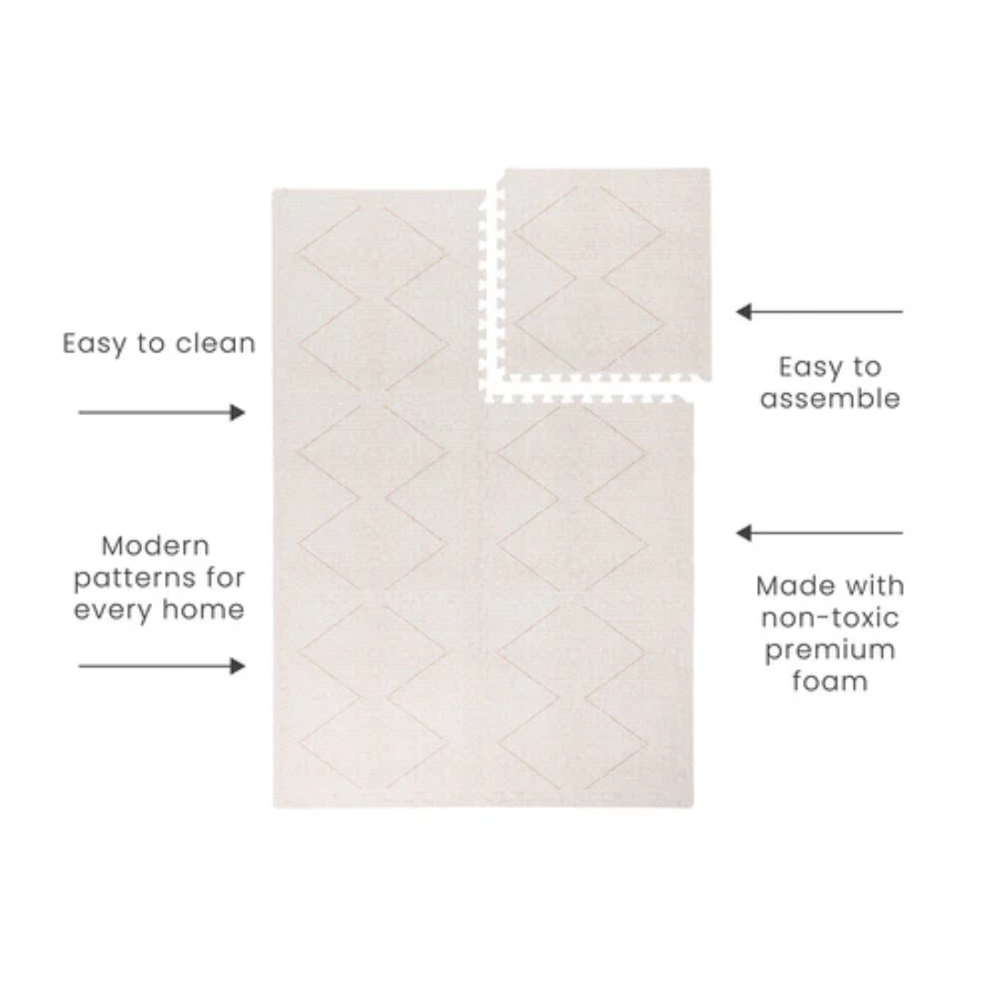 • Toddlekind’s playmats consist of six 60cm/2ft tiles with edging bonders to give a seamless rug-like look.