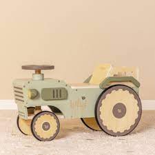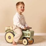 Hey there, little farmer! Get your tractor started and explore the charming little farm. Step by step, you'll learn how to walk, and this wooden walking tractor will be there to help you along the way. Imagine having your own farm—growing crops, taking care of chickens and cows—all while riding your very own tractor. The walking tractor with 4 wheels serves as both a seated ride-on toy and a stability aid for those first steps. Your little one can comfortably sit on the tractor, holding onto the steering wheel for support. When ready, the walker will help stabilize your child, enhancing motor skills and balance. The compartment at the back of the tractor provides a convenient space to collect and store favourite toys. Whether it's small plush animals, building blocks, or other playthings, the compartment encourages organization and adds an interactive element to playtime. Thanks to the rubber strips on the wheels, you won't have to worry about your floor when your child is on a farm adventure. Watch as your little one joyfully navigates the world, one step at a time.