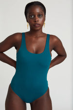 The Green Swimsuit is our most elegant piece. A square neckline, tiny straps and open back, is the best fit for the summer days and, why not, nights. Also, our swimwear like our activewear collection, is made of 100% regenerated nylon fibers, like fishing nets or plastic bottles.