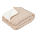 A beautiful cradle blanket that keeps your child wonderfully warm. With a soft jersey fabric on one side and a lovely teddy fabric on the other, the blanket can also be used as a shawl, bedspread or play mat. This one from the Pure Beige collection has a beautiful beige colour. The outer fabric is made of 100% cotton and the lining of 100% polyester. The cradle blanket can be machine washed. Also available as a cot blanket.