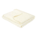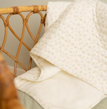 Keep your baby snug and warm during sleep with this beautiful bassinet blanket. Its front is crafted from 100% organic cotton adorned with subtle quilted stripes for a contemporary look. On the reverse side, the blanket is lined with soft and warm fleece, so that it can be used as a spread or play mat as well. The adorable Blueberry Leaves design wraps your baby in the comforting embrace of nature's beauty, cradled in serenity and encouraged to drift into sweet dreams.