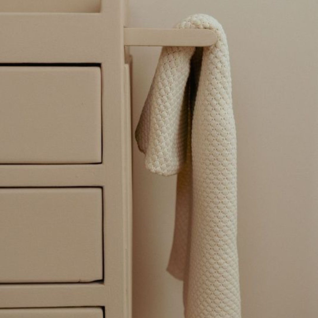Keep your little baby snug and warm during sleep with this beautiful bassinet blanket. Knitted with love and care of 100% organic cotton, it is incredibly soft, breathable and warm. The patterned stitch combined with the timeless colour Pure Soft White will give a bright and serene touch to the bassinet and nursery. With a size of 70 x 100 cm you can also use the blanket as a wrap, bedspread or play mat.