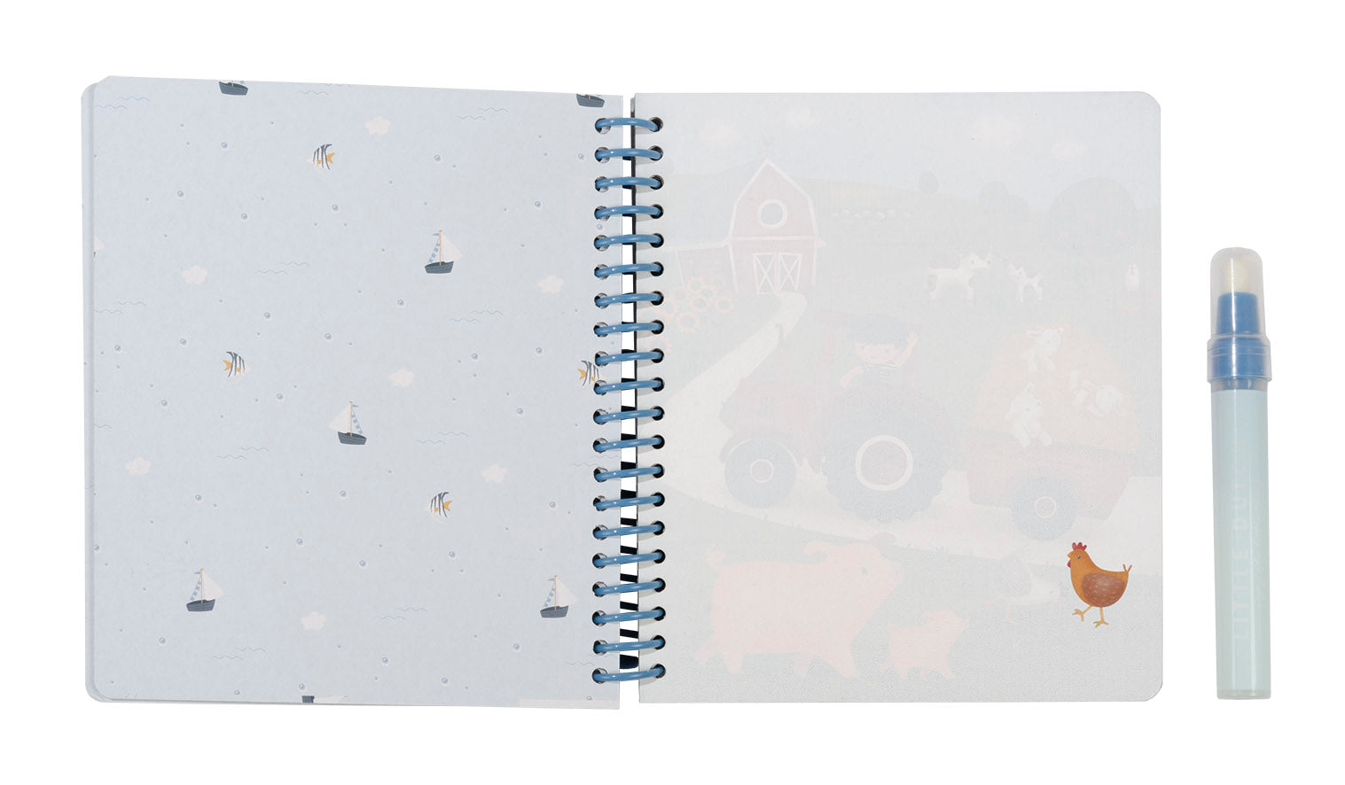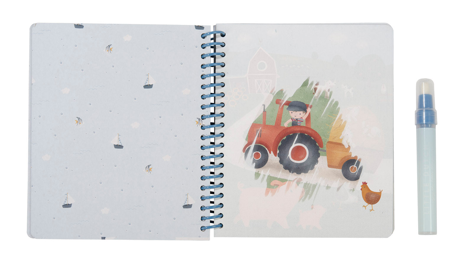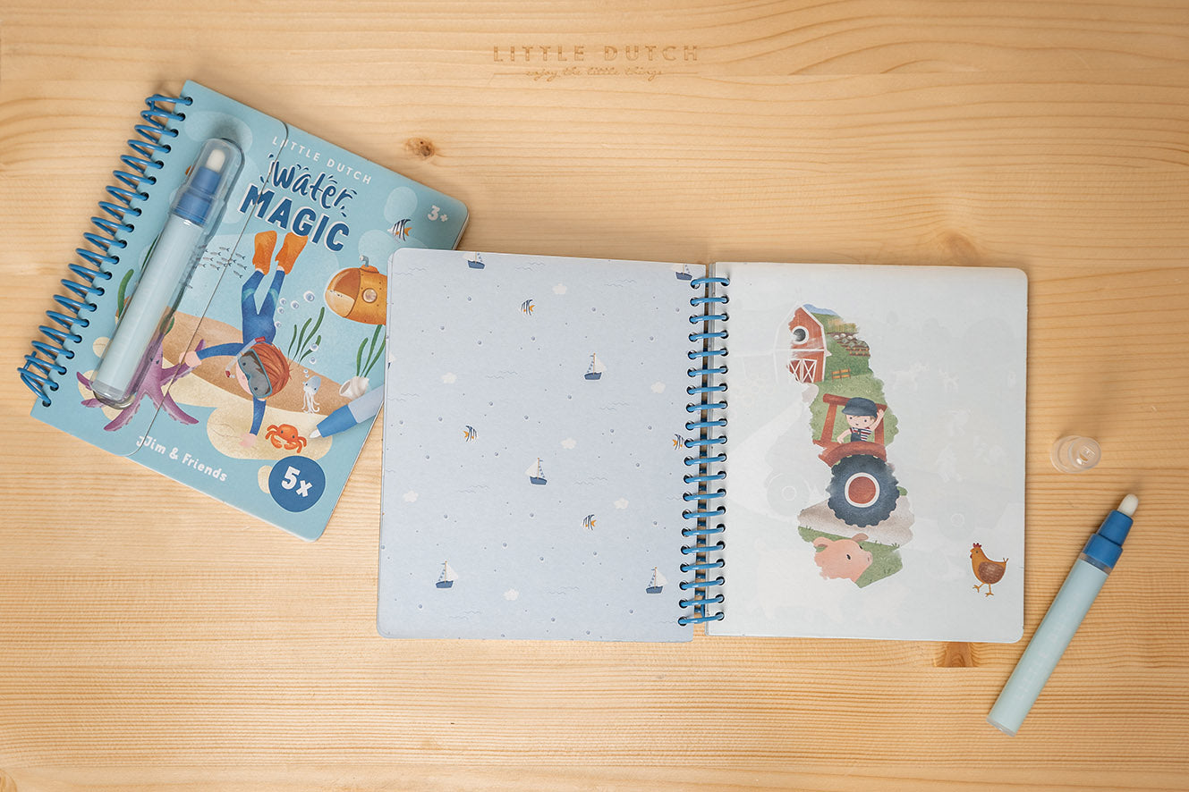 This looks like magic! With this Little Dutch Jim & Friends watercolour book, you can make the most beautiful creations of the different professions of Jim and his friends. On each page, a piece is already coloured in so you have a hint of the drawing that is hidden there. Fill the included special pen with water and start drawing. When water hits the cardboard, the coolest drawings appear, including jungle, farm, universe and much more. When the paper dries up you can redraw the drawing again, giving you fun time after time. The book is made of sturdy cardboard with recognisable Little Dutch designs and colours and has a handy ring binder. The ideal activity for at home and on the go!