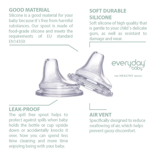 Our spout is also carefully tested by authorized testing institutes to meet our high demands on materials, durability and function. With Everyday Baby Spill-free Spout, you know you're making a safe choice. It is made of soft medical silicone, completely free from any substances that can harm your baby.