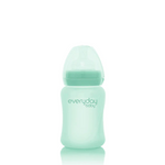 Make mealtime more fun and easy! Everyday Baby Glass Baby Bottle Healthy + is a bottle with an ergonomic design made of safe materials. Because of the durable high-quality borosilicate glass the bottle can be both cooled and heated, without the risk of it cracking. The smart silicone coat protects the bottle from shattering if being dropped.