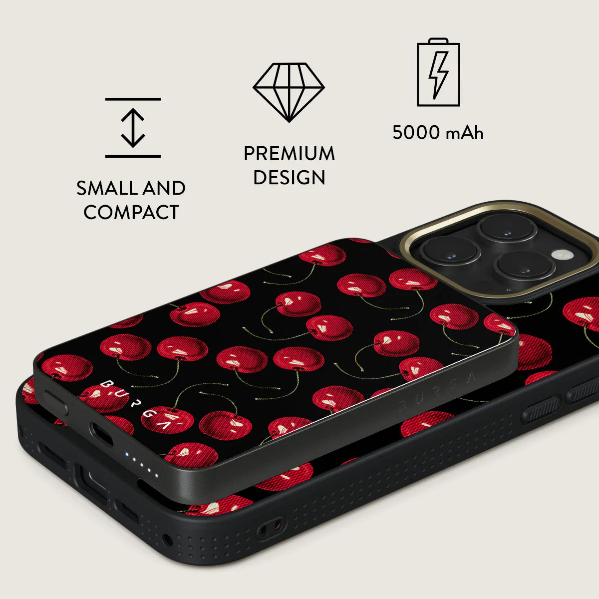 Charge your devices on the go with BURGA’s Magnetic Power Bank.
