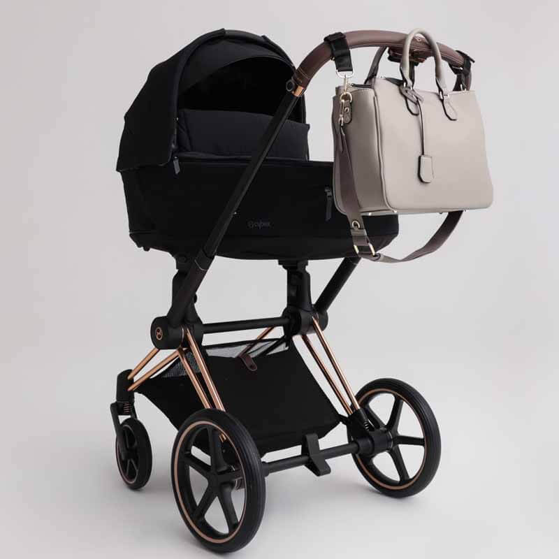 - Stroller clips for easy attachment to any stroller or pushchair model. Adjustable in length to fit the stroller handle. They can be detached from the bag and permanently attached to the stroller, making bag suspension easy and quick even when in a hurry.