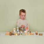 These wooden blocks in a barrel are indispensable. The barrel contains no fewer than 50 wooden blocks with beautiful prints from our Little Farm collection. Stack the different blocks to build the cutest farm. The blocks guarantee a lot of building pleasure and can be easily stored in the barrel!