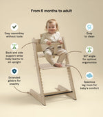 The iconic Stokke® Tripp Trapp® chair is designed to grow with your child — from newborn to adult — bringing them right to the heart of the family table. Paired with the Tripp Trapp® Baby Set, this bundle is perfect for babies who are ready to sit up and join mealtimes at around 6 months.