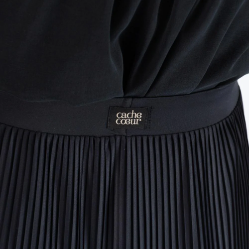 Discover Bardot, a sublime long pregnancy skirt in pleated mesh, with a shiny satin effect for a chic and trendy seventies look. Thanks to its soft, wide elastic and high waist, it will fit your body perfectly during pregnancy and long after.