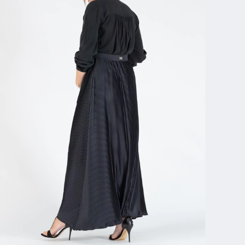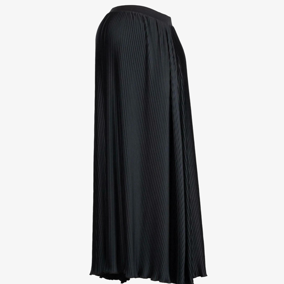 Go for a chic seventies look with the Bardot long skirt in pleated satin knit, made from an Italian fabric.
