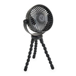 This practical fan features a built-in rechargeable battery and a flexible tripod with three legs, making it easy to use both indoors and outdoors.