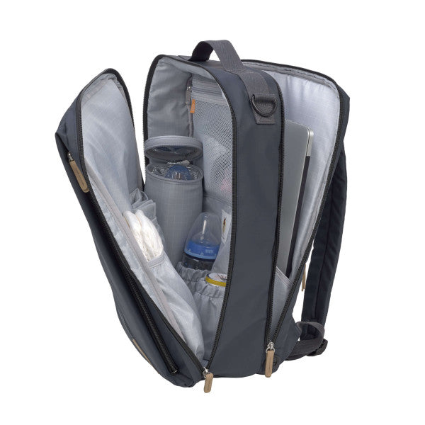 LÄSSIG’s Tidy Talent Backpack, is the ideal diaper backpack for working parents. With well planned storage space, including a laptop compartment and extensive diaper changing accessories.