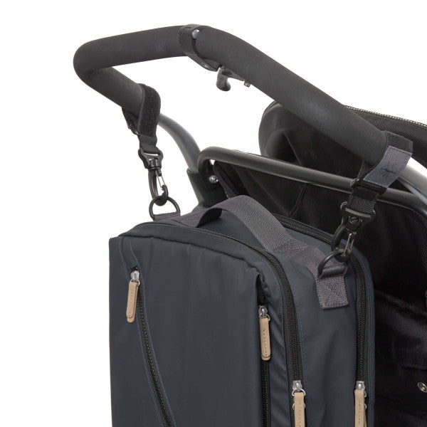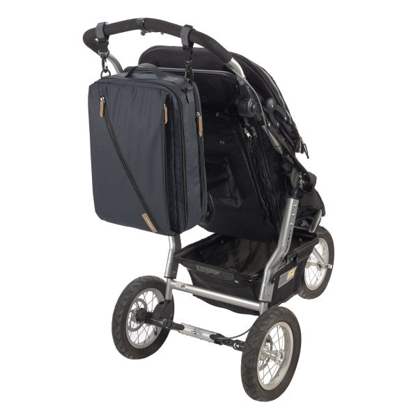 Equipped with a water-repellent changing mat, an insulated bottle holder, a jar holder and a stroller attachment, you have everything you need when out and about. With the many different practical compartments that are accessible from both the inside and outside, you can easily stow away your utensils just as you like.