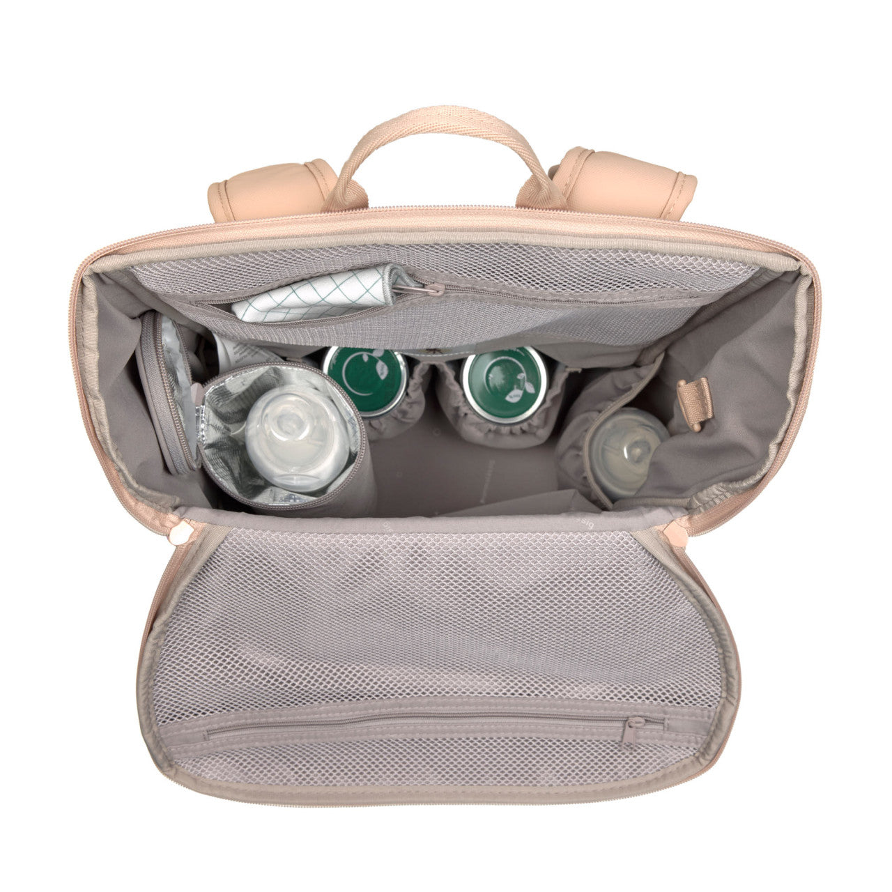 The LÄSSIG Slender Up Backpack changing bag in camel is made from 100% polyester (recycled) and impresses with its clever storage space. The generous opening and practical changing accessories make it the ideal companion for families.