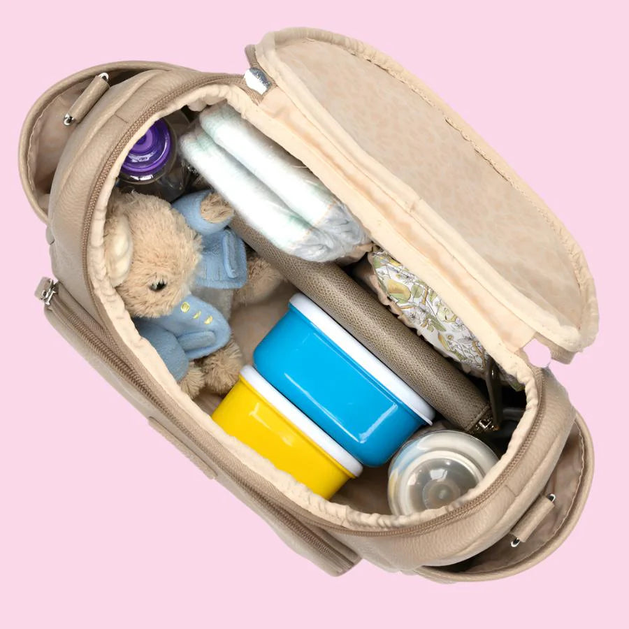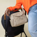 Parenting on-the-go just got easier with the with the Lenni Compact Changing Bag.  Crafted from sleek vegan leather, this 2-in-1 bag can be attached to your stroller to use as a caddy or sling it over your shoulder for chic handbag vibes. Featuring multiple pockets, including a secure zipped front pocket for your phone and other essentials, you'll have everything you need at your fingertips. Don't wait, grab yours now!