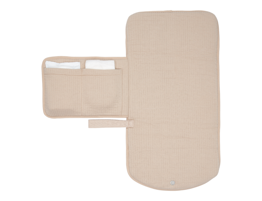The Little Dutch changing mat with handle Pure Beige is ideal for travelling and nice and soft for your little one. The changing mat has pockets for nappies and wipes. It can be easily folded and closed with the magnetic closure with one hand. There is a handle on the outside so you can easily carry the mat and hang it on your wrist.