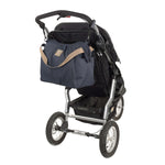 The diaper bag for twins comes with an extra large water-repellent changing mat, a removable food jar holder, a water-repellent wet compartment as well as other compartments and pouches for a cell phone, keys and pens.