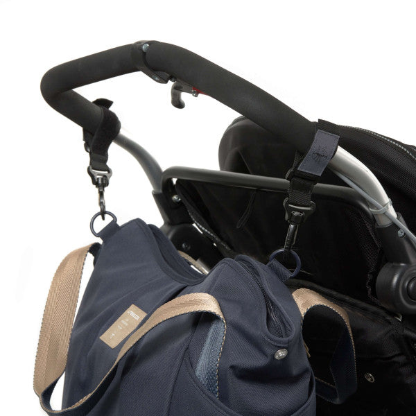 There are provided hooks for the stroller so that you can relieve your back again at any time