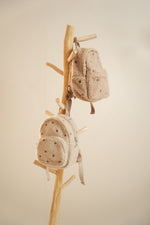 Go out together with this soft teddy backpack in the color sand. Perfect for little adventurers to take their things with them. This children's backpack combines comfort and style, with adjustable straps and plenty of space for everything your little one needs. The bag has two elastic bands to keep drinking cups upright so they don't leak. In addition, the bag has a label on which you can write down your child's name. Ideal for every discovery!