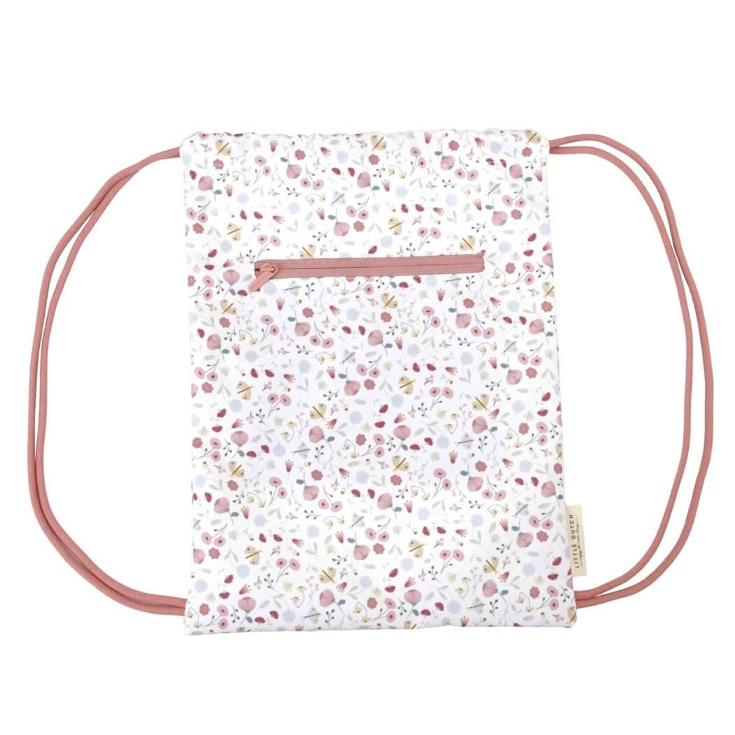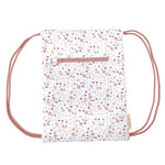 This cute gym bag with Flowers & Butterflies print is made from recycled PET bottles. The pocket with zipper on the front of the bag can also be used as extra storage. The bag has a handle and double drawstrings allowing your child to wear it as a backpack.  The gym bag measures 38 x 29 cm. You can write your contact details on the label on the inside of the bag.