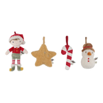 Turn your Christmas tree into a magical scene with the Jim Christmas ornament set. In the box you will find 4 plush ornaments: Christmas doll Jim, a cheerful snowman, a festive candycane and a radiant star – all carefully designed to give your tree just that little bit extra.