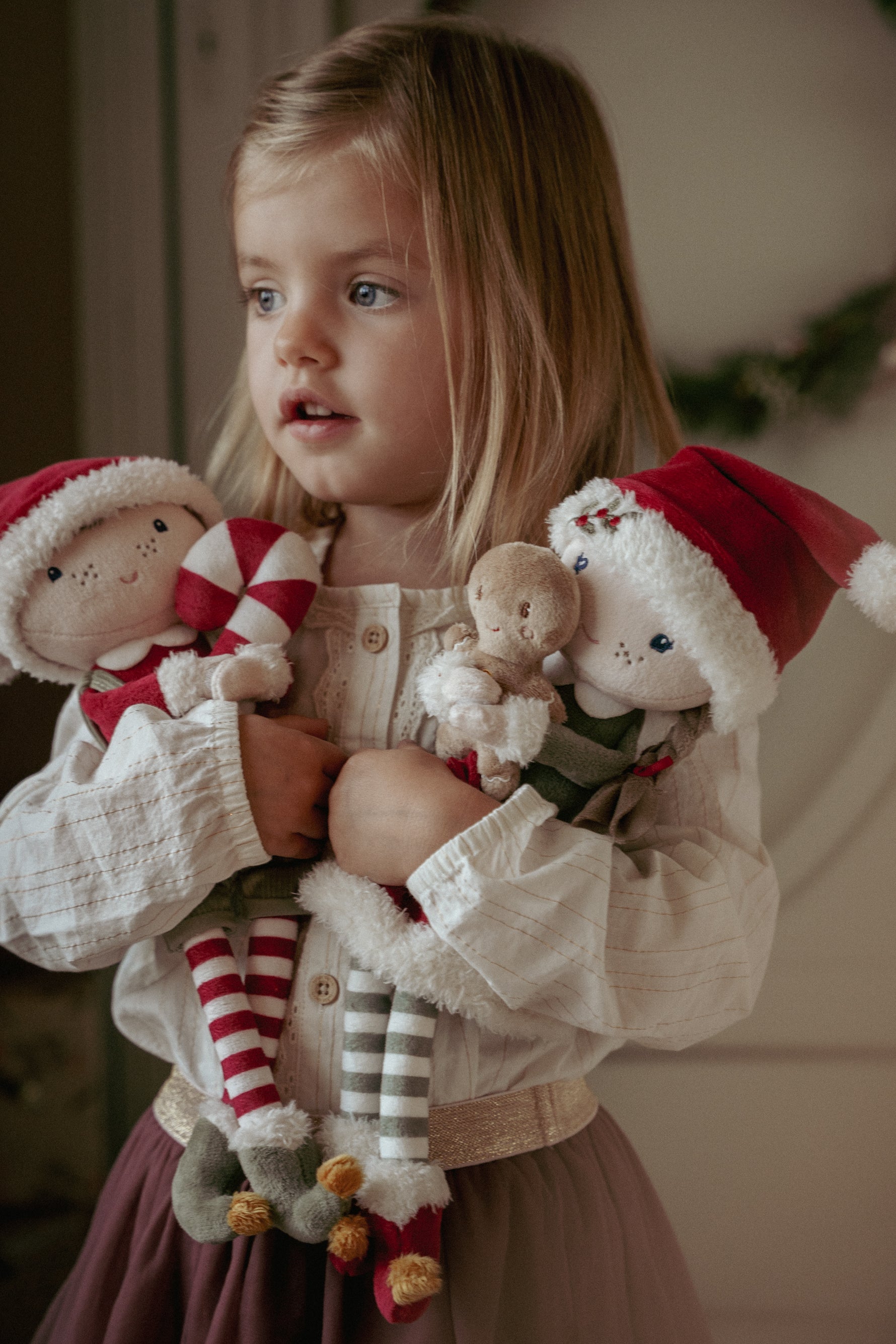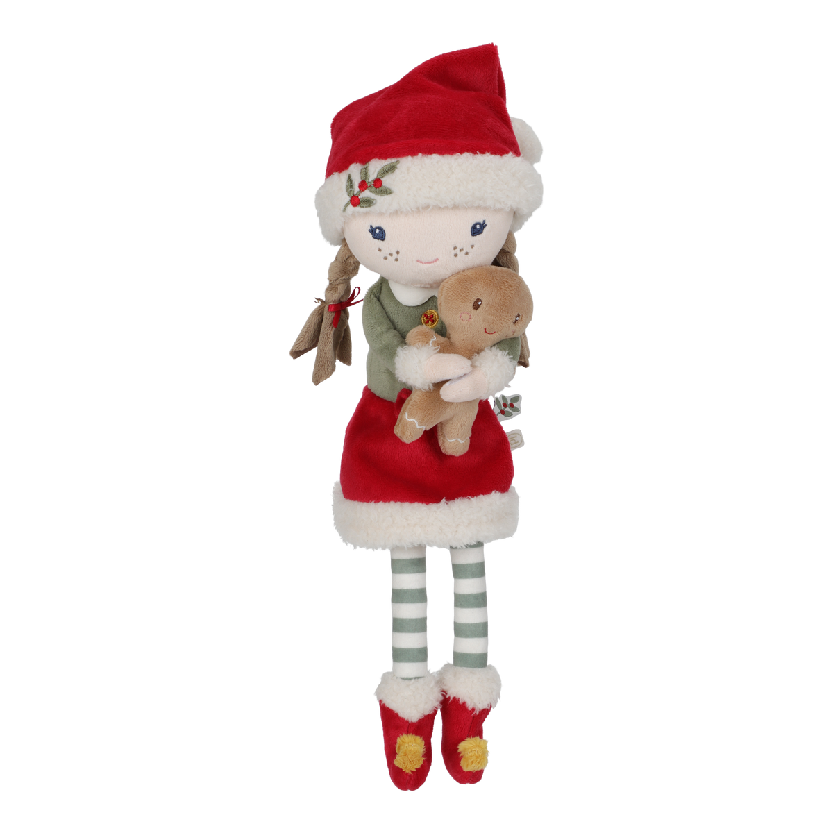Christmas doll Rosa shines in her festive outfit! Her soft body and warm red hat make her the perfect Christmas cuddly toy. Thanks to her Velcro hands, she holds her gingerbread man tightly. A sweet gift in a beautiful gift box!