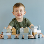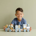The beautiful Little Dutch wooden train has been decorated with marine animals and water plants from the Ocean collection. Build new wagons with these blocks in various shapes and fresh, modern colours. The train consists of 17 parts and is approx. 45 cm long. This toy is always fun to play with and is also a nice accessory for the nursery or child’s bedroom.