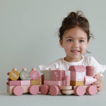 The beautiful Little Dutch wooden train has been decorated with the flowers and insects of the Wild Flowers collection. Build new wagons with these blocks in various shapes and fresh, modern colours. The train consists of 17 parts and is approx. 45 cm long. This toy is always fun to play with and is also a nice accessory for the nursery or child’s bedroom.
