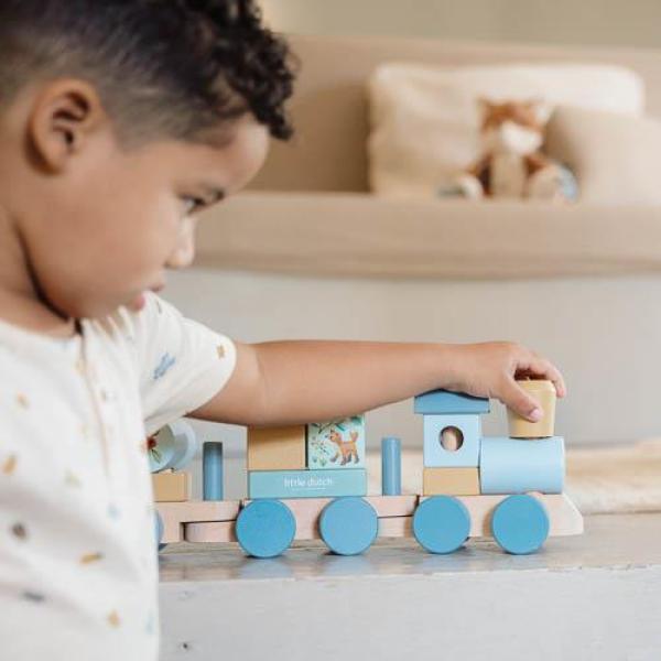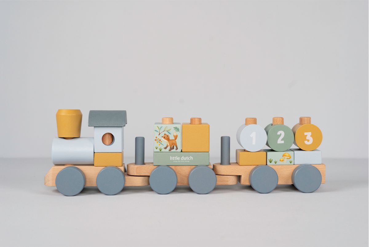 Choo choo! All aboard for a magical journey through the enchanted forest! Let's stack these blocks one by one and create the three wagons of this beautiful wooden train. With natural treasures, some of the friendly Forest Friends, and the numbers 1, 2, and 3 adorning some of the blocks, this stacking train will transport you to a land of imagination and wonder. A fun way to play and develop hand-eye coordination at the same time. The train includes 17 parts and is approximately 45 cm long.