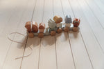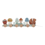 Choo choo! Gather all the lovely animals, mushrooms, and forest treasures and hop on board for a magical journey with Forest Friends. Stack all the blocks one by one to the three wagons of this wooden stacking train. The squirrel will take the lead and sits at the front. Which mushroom will follow and where does the pine cone go? Each block becomes a piece of the story of your imagination. A fun way to play and develop hand-eye coordination at the same time. The train includes 18 parts and is approximately 45 cm long.