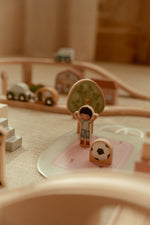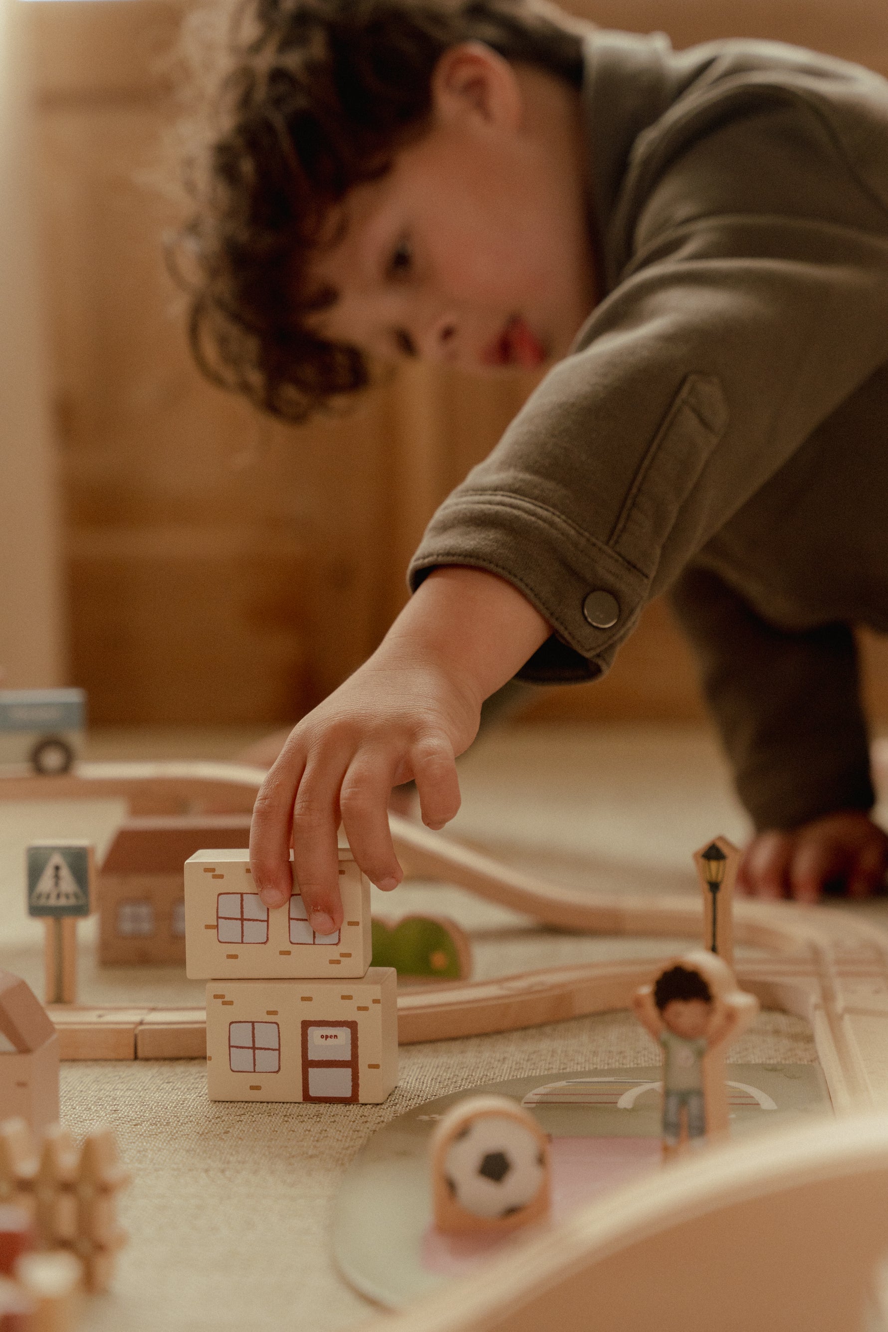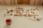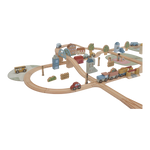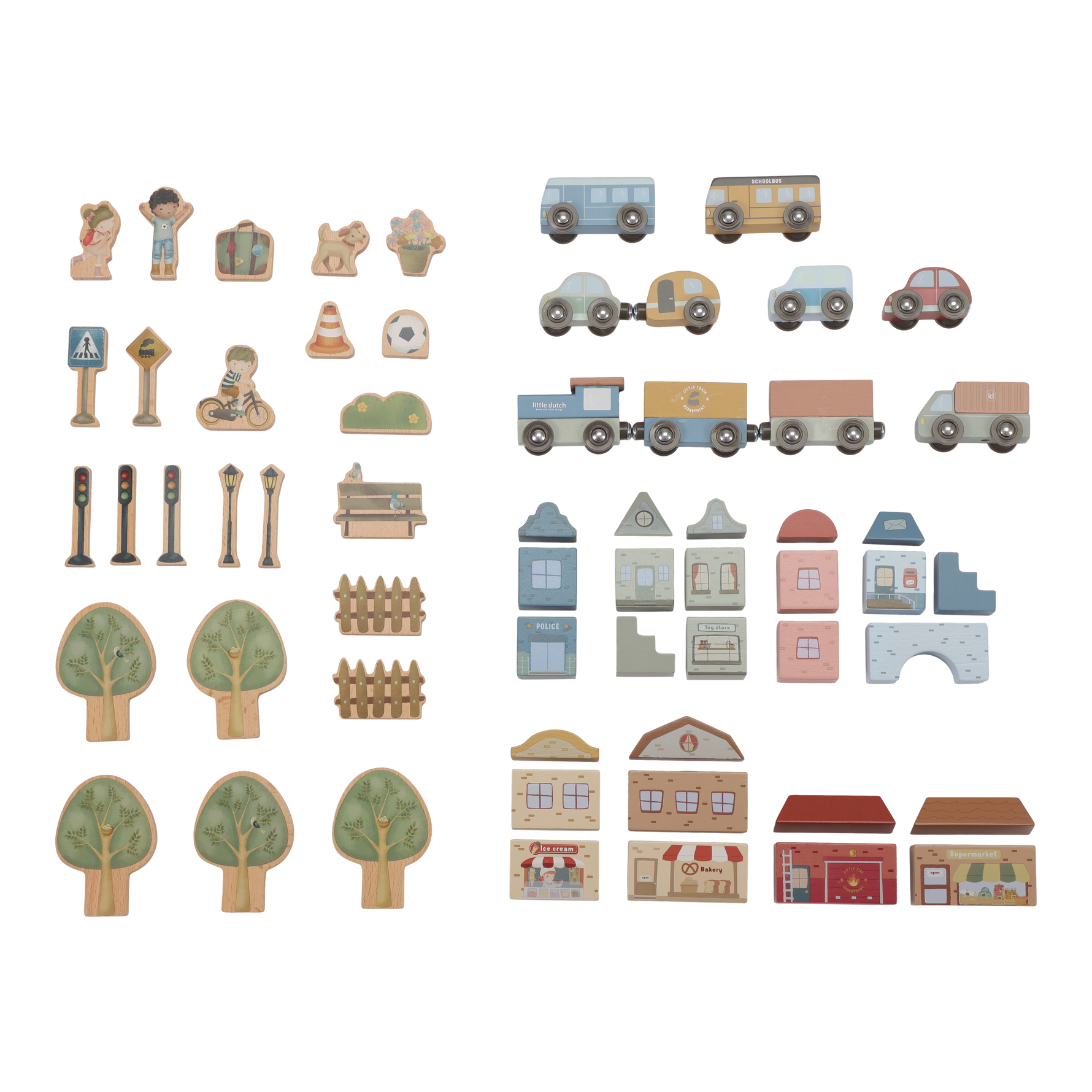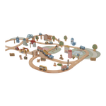 Build your own world with the Little Dutch wooden train track XL! This extensive set includes a locomotive, wagons, rails, bridges, buildings, cars and figures. There are also trees and road signs. The possibilities are endless! Drive the train over the bridge, stop at the station and discover the city. Combine the train track XL with expansion sets to make the fun even greater.
