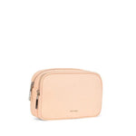 Belt bag with two zippered compartments, a flat pocket with snap closure and a single card slot at the exterior back. Adjustable belt strap for comfortable wear around the waist or across the chest.