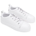 Women's modern outsole sneaker with simple upper and signature logo detail at back counter. Interior: Woven label with logo. Material: PU / White Outsole Dimensions: 1/2" outsole