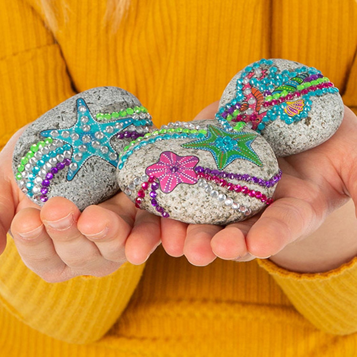 You make the most beautiful stones yourself by decorating them with the rubbing plates and more than 350 different colored rhinestones.