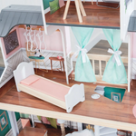 You can even store doll clothes in the closet that comes with three coat hangers! Made to love for years to come, the Celeste Mansion Dollhouse will breathe life into your child's games of pretend and provide hours of playful adventures.